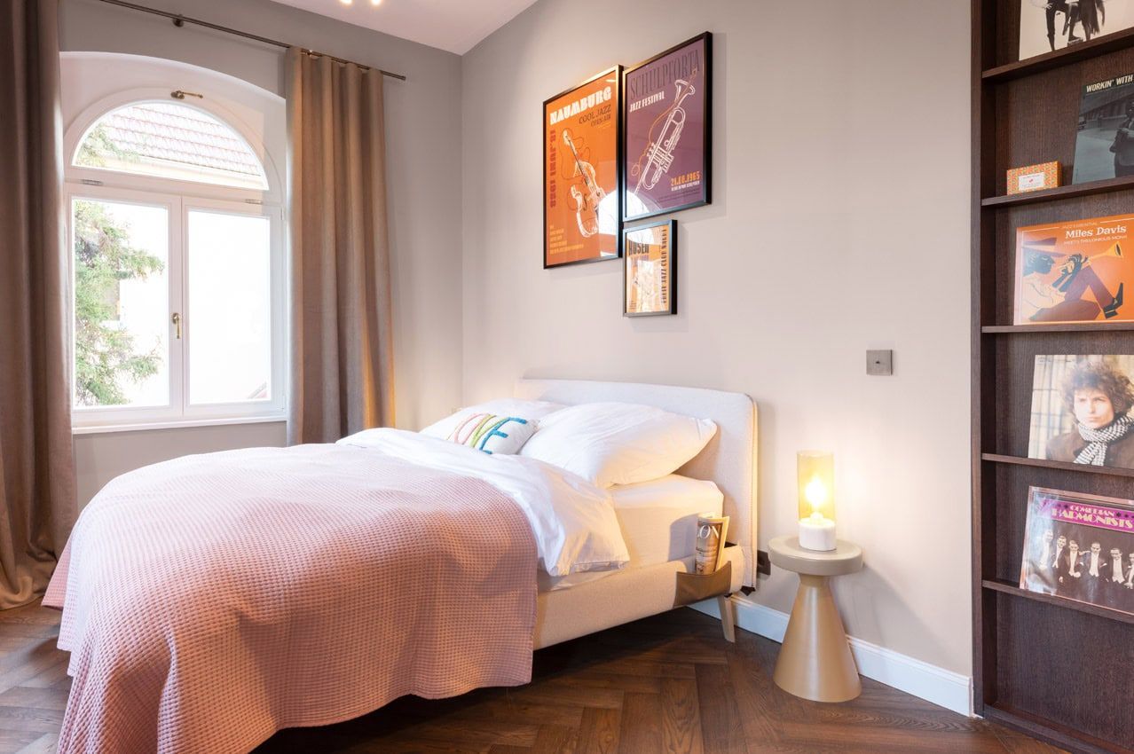 Sechs individuell gestaltete Apartments erzählen ihre eigenen Geschichten. Im Musikzimmer wartet ein Plattenspieler mit vergessenen Vinylschätzen, in der Bibliothek finden Lesende ein stilles Refugium mit Terrasse und Blick in die Baumwipfel. Der elegante Salon erinnert mit Kerzenkamin und Frühstücksbalkon an mondäne Zeiten, während das Atelier unter dem Dach mit seiner langen Tafel Raum für gesellige Runden schafft.