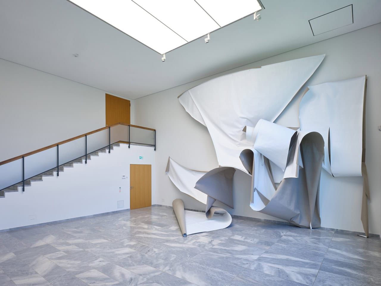 Unter dem poetischen Titel „The Sprayed Dear“ – ein Wortspiel mit dem goldenen Hirsch auf dem Dach des Gebäudes – präsentiert Grosse drei extra für die Ausstellung gestaltete Werke. Neben der überdimensionalen Aluminiumskulptur „The Sprayed Dear“ sind auch ihre Frühwerke aus den 1980er-Jahren erstmals öffentlich zu sehen darunter die überdimensionale Styroporskulptur „Ghost“ und die textile Skulptur „Untitled“. Die Künstlerin lädt die Besucher ein sich mit allen Sinnen auf ihre Ausstellung einzulassen. Ihre Werke entstehen allerdings nicht auf klassischen Leinwänden – sie entstehen überall: auf Architektur, Objekten, Landschaften. Ihre wichtigste Technik: die Sprühpistole. Ihre wichtigste Regel: keine.