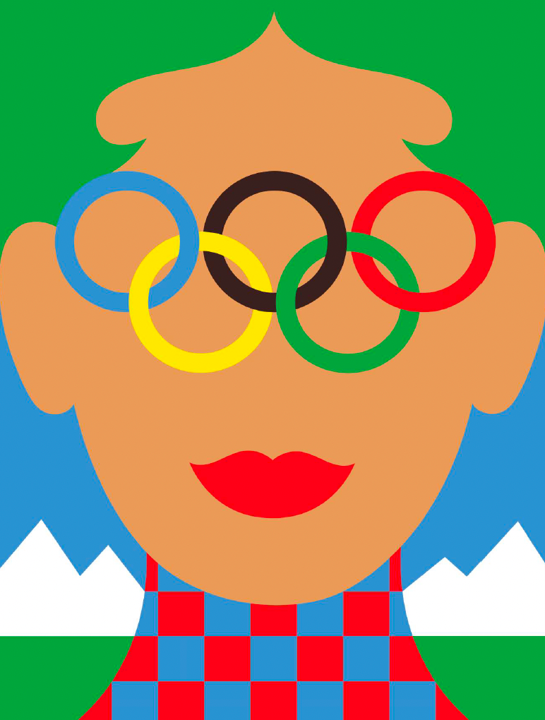 Nein, keine Tomaten, sondern Ringe auf den Augen! Und das gleich fünfmal. Anlässlich der Olympischen Winterspiele Mailand Cortina 2026 liefert Olimpia Zagnoli in ihrem Poster "Visione Olimpica" einen Blick auf die Welt durch die ikonischen Ringe. Die italienische Illustratorin fängt nicht nur Sportler, sondern auch das Publikum ein- insziniert in knalligen Farben mit einem Hauch Retro.