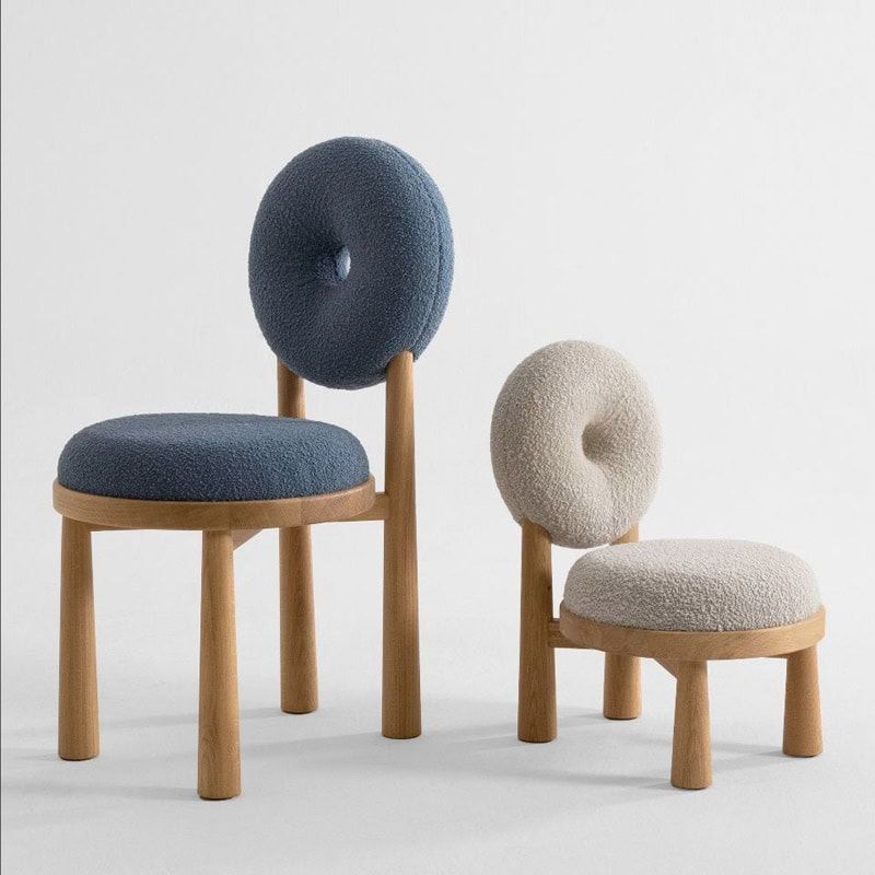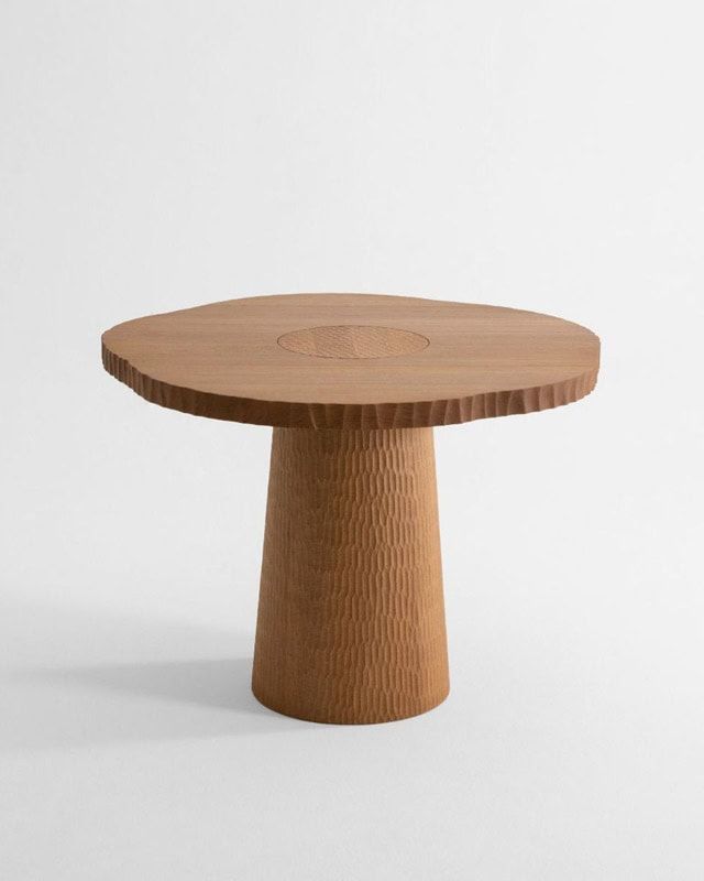Jedes Objekt verkörpert Simons charakteristische Designhaltung inspiriert vom Art Déco geprägt vom japanischen Wabi Sabi Prinzip und ausgeführt mit höchster handwerklicher Präzision. Der BABA Chair überzeugt durch seine kraftvolle Rundung während der TAMA Chair mit reduzierter Geometrie und weich fließenden Linien spielt. Der TIGA Tablegetragen von drei asymmetrisch angeordneten Beinen wirkt wie eine stabile Skulptur reduziert aber ausdrucksstark. Der SPLIT Armchair schließlich schafft mit seiner geteilten Rückenlehne einen spannungsvollen Kontrast zwischen Struktur und Leichtigkeit.